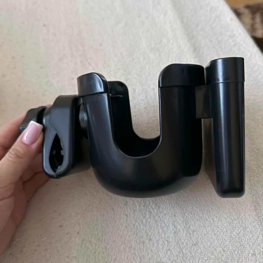 StrollCup™, bebek arabalarına takılan, kahve, biberon veya su şişesi gibi içecekleri güvenle tutan pratik bir aksesuardır. Elleriniz tamamen serbest kalarak bebeğinizle yürüyüş yapmanızı kolaylaştırır.